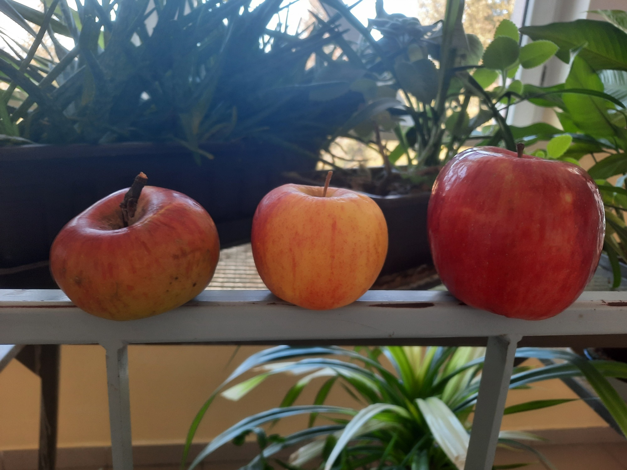 Jedno je z babičkinej záhrady - je bio, nestriekané a chemicky neošetrené, druhé je zo sadu z Čachtíc, ktoré už je striekané, ale oveľa menej ako jablko kúpené v Lidli, ktoré je chemicky ošetrené v čase čase pestovania a chemicky stabilizované, aby vydržalo dlhú cestu zo vzdialených krajín.