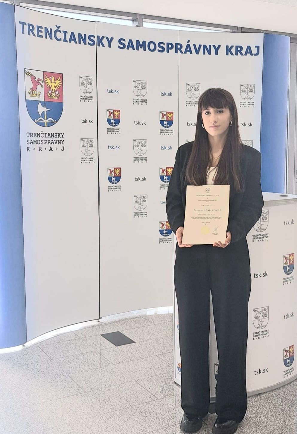 Tatiana Beniaková, žiačka 2. A triedy, získala ocenenie a poďakovanie predsedu TSK, Ing. Jaroslava Baška, za úspešnú reprezentáciu školy, kraja a Slovenska na medzinárodnej úrovni. Tatiana sa v dňoch 22.- 26. októbra 2025 zúčastnila 15. Majstrovstiev Európy WUKF v Rige, kde v kategórii kumite 16-17 rokov, 55-60 kg dosiahla 3. miesto. Aj my srdečne gratulujeme ku krásnemu úspechu!
